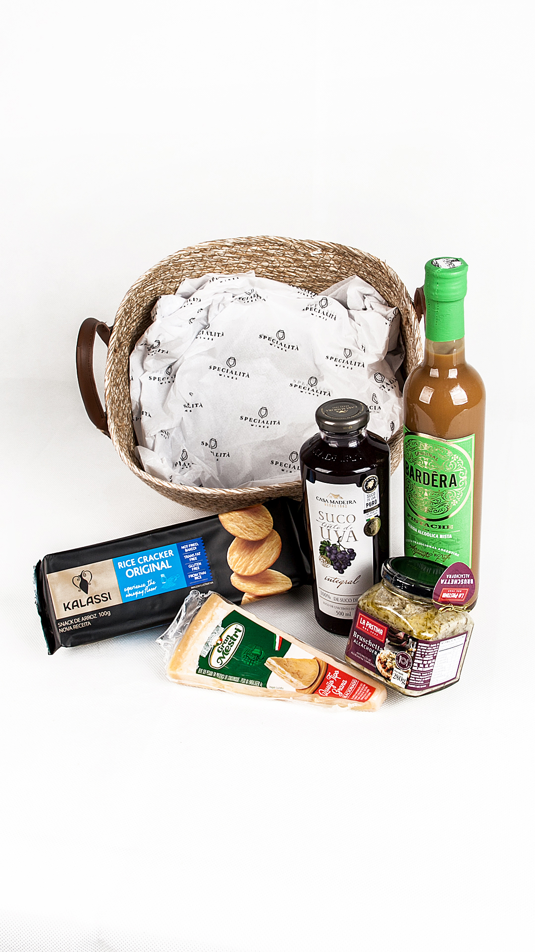 O Kit Pistage – Licor de Pistache e Seleção Gourmet Artesanal é um presente refinado e encantador, que combina sabores únicos e texturas sofisticadas. O licor artesanal de pistache Bardéra é o grande destaque, equilibrando cremosidade e intensidade, enquanto o Suco de Uva Integral Casa Madeira, o QUEIJO PARMESAO Gran Mestre e a Bruschetta La Pastina criam uma experiência gourmet completa. Acompanha uma charmosa cesta de fibra natural com acabamento premium — ideal para presentear com elegância e originalidade. Parte da coleção Specialità Gift Collection 2025–2026, celebra o prazer dos detalhes e o bom gosto em cada elemento.